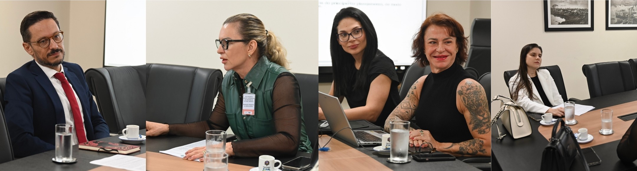 Participaram do encontro o vice-diretor da Emeron, juiz Cristiano Mazzini; a chefe de gabinete da Defensoria Pública do Estado de Rondônia (DPE-RO), Silvia Primila Garcia Raskovisch; a diretora da Escola Superior do Ministério Público de Rondônia (EMPRO), Edna Antônia Capeli da Silva Oliveira; a coordenadora do DHJUS/UNIR, professora doutora Aparecida Zuin, e a Diretora da Divisão de Registro Acadêmico (Dirca/Emeron), Juliana Mendes Wagner.